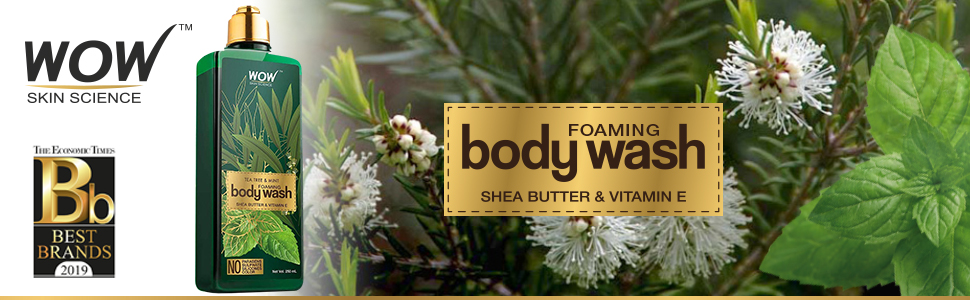 Premium foaming body wash powered with premium skincare bioactives for refreshing and toxin-free bathing experience. WOW Skin Science Tea Tree & Mint Foaming Body Wash gives you reviving bathing experience every time. Its cool minty fragrance with camphor notes refreshes your mood immediately. Pure Shea Butter and Vitamin E keep your skin soft, smooth and silken. Tea tree oil clears your skin, and peppermint oil energizes your mind and body. It is also completely free of harsh sulphates, parabens, mineral oils, silicones, salt and color.